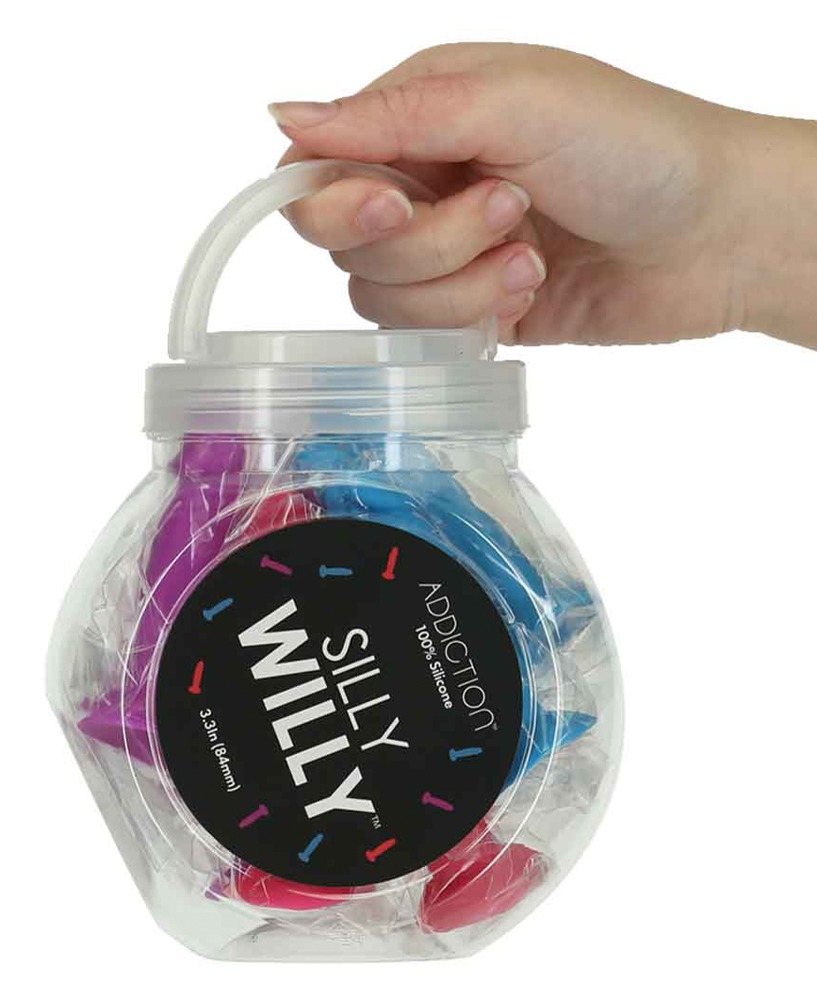 Addiction Silly Willy presenteert 12 kleine, kleurrijke natuurlijke dildo's in een praktische, aantrekkelijke plastic snoeppot met schroefdeksel. Een perfecte blikvanger op de toonbank en een stimulans in de kassa (meeneemartikelen).