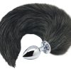 Conisch gevormde, goed passende anaalplug Black & White Fox Tail M van Alive met een lange, pluizige synthetische staart op de anaalveilige stopper. De rondom gladde metalen plug kan ook verwarmd of gekoeld worden om op temperatuur te spelen.