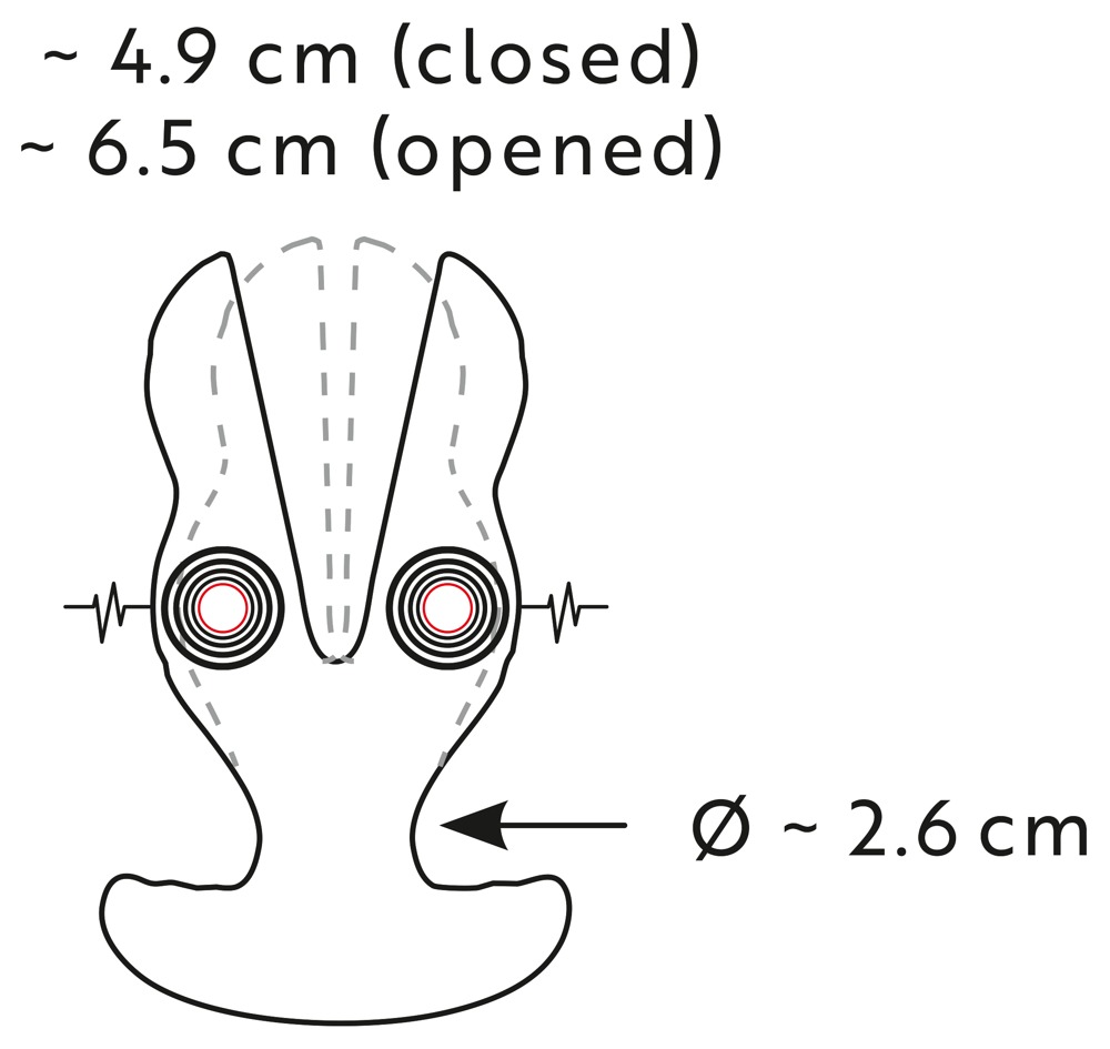 RC Power Expander Plug van ANOS met vibratie- en stimulatiestroom. Voor perfecte stretching en intense stimulatie in de bips. De geavanceerde 2-armige plug wordt ingebracht met de uiteinden tegen elkaar gedrukt. Dan zet hij uit tot zijn volle breedte in het anale kanaal. Bovendien zorgen 2 krachtige motoren betrouwbaar voor opwindende e-stim en vibro-variatie.