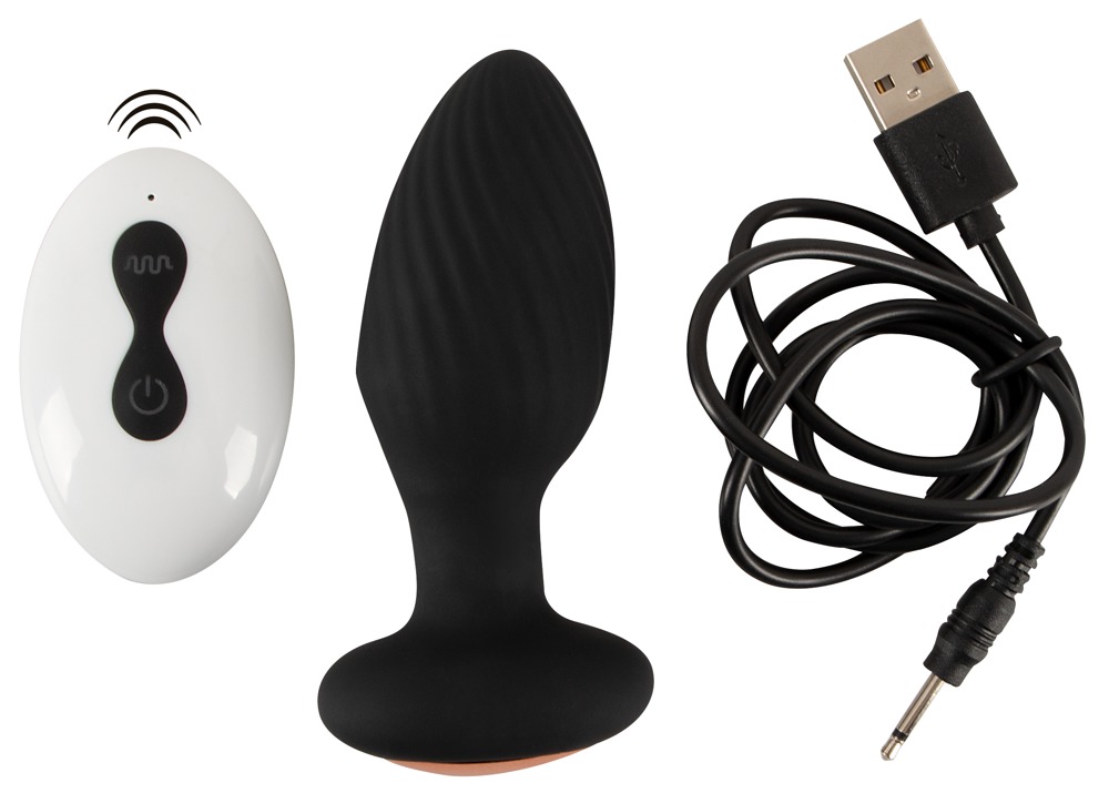 Opvallend spiraalvormig gestructureerde Vibro-Analplug RC Roterende Buttplug van ANOS met een druk roterende functie in de conisch gevormde schacht. Kan gemakkelijk worden ingebracht en verwent de anus en het anale kanaal op een unieke en zeer intensieve wijze. Ook geschikt voor bad en douche, want hij is waterdicht.