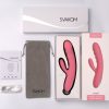 Stimulerende golvende rabbit vibrator Avery van SVAKOM met energieke stuwfunctie voor diep intens dubbel genot van vagina en clitoris. Zacht en zijdeachtig, de flexibele siliconen vibrator nestelt zich perfect in de hand en glijdt over de huid en in intieme dieptes alsof het vanzelf gaat.