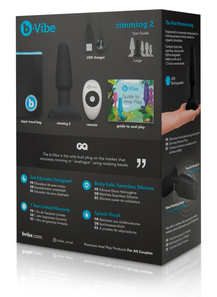 Geavanceerde anaalvibrator Rimming 2 van b-Vibe met roterende massagekralen in de taper voor gevoelens als de beste rimbeurt (anilingus)! Het anale kanaal wordt ook verwend met intense vibraties. Eén speeltje - dubbel anaal genot!