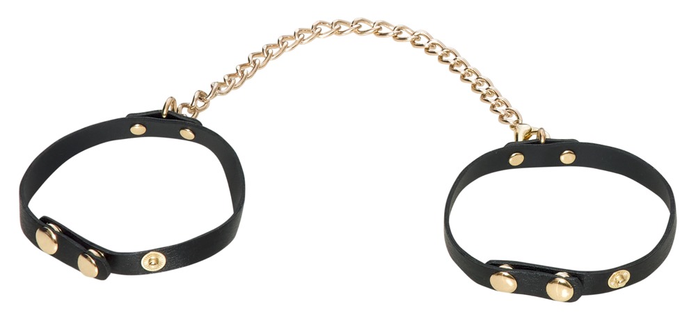 5-delige bondageset van Bad Kitty gemaakt van fijn, zwart imitatieleer met goudkleurige accessoires. Een elegante, zachte bondageset voor nieuwsgierigen en fijnproevers: compleet met leiband, oogmasker en mini crop voor veelzijdige speelsheid ver weg van het alledaagse. De smalle, elegante bandjes zijn snel aan te trekken met gespsluitingen en kunnen op maat worden versteld. De riem en kettingen hebben elk een karabijnhaak aan één kant. Deze set bevat