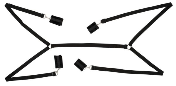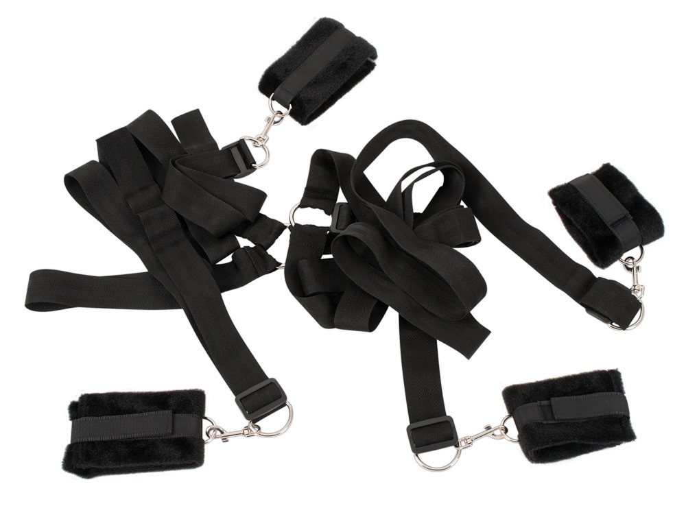 Met de 5-delige Bed Shackles bondageset van Bad Kitty verander je elk bed in een professionele bondagespeeltuin. Thuis of onderweg. De verstelbare kruisband wordt eenvoudig onder het matras geplaatst. De boeien voor handen en voeten worden dan eenvoudig met de karabijnhaken aan de banden gehaakt. De zachte, comfortabele hand- en voetboeien zijn voorzien van praktische klittenbandsluitingen en kunnen dus op maat worden versteld.
