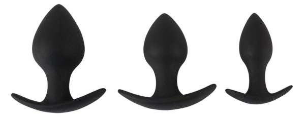 3-delige anaalplug set met een aangenaam zachte textuur. De verschillende maten zijn perfect voor een stapsgewijze anale training. Door hun conische vorm zijn de stekkers bijzonder gemakkelijk in te brengen en bieden ze een aangenaam vol gevoel. Met extra brede basis voor een veilige grip en eenvoudige bediening.