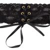 Prachtige halsketting van zwart kanten lint, met 6 oogjes en satijnen lintveter om te sluiten en de lengte te regelen. De sluiting kan aan de achterkant of aan de voorkant worden gedragen.