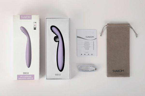 De handige, slanke Cici 2 vibrator van SVAKOM bereikt gemakkelijk de vaginale G-zone met zijn geribbelde, flexibele vibro-massagekop. Hij kan ook worden gebruikt om de clitoris en andere erogene zones nauwkeurig te verwennen. Alleen of met z'n tweeën! Zelfs in bad of onder de douche, want de Cici 2 is waterproof.