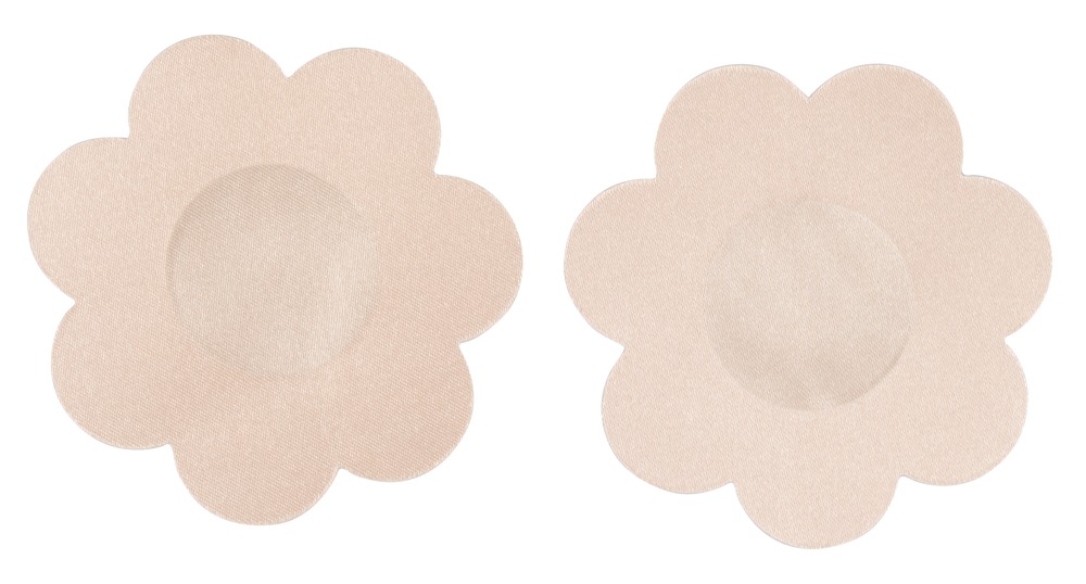 Bloemvormige textielstickers met huidvriendelijke siliconen kleeflaag voor een discrete bedekking van de tepels. Met een praktische uitsparing in het midden voor meer draagcomfort. Bijzonder goed draagbaar onder dunne stoffen, want er is niets om door te laten zien.