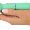 Pastelkleurige minivibrator van de 5e generatie Cuties met intens diepe vibraties. De superstille, krachtige motor biedt 10 veelzijdige standen die je met één druk op de knop kunt bedienen. Met zijn fluweelzachte, flexibele massagekop is de siliconen vibrator net zo geschikt voor lichaamsmassage als voor het verwennen van uitwendige hotspots en intieme zones. Klein, stil en discreet, de Mini Wand is de perfecte upgrade voor verwennerij alleen of met z'n tweeën. En past in elke handtas!