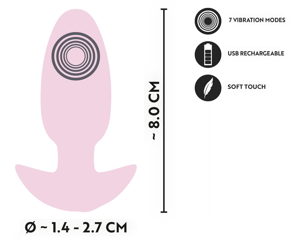 De Vibrerende Mini Butt Plug Rose van Cuties is het brutale avontuur voor iedereen die op een speelse manier anaal plezier wil ontdekken. De compacte, zijdezachte siliconen plug heeft een vederlicht ontwerp met een smal uiteinde, glijdt als bij toverslag en maakt inbrengen supergemakkelijk. 7 speelse vibratiestanden zorgen voor tintelende afwisseling en veel plezier. Druk gewoon op de knop!