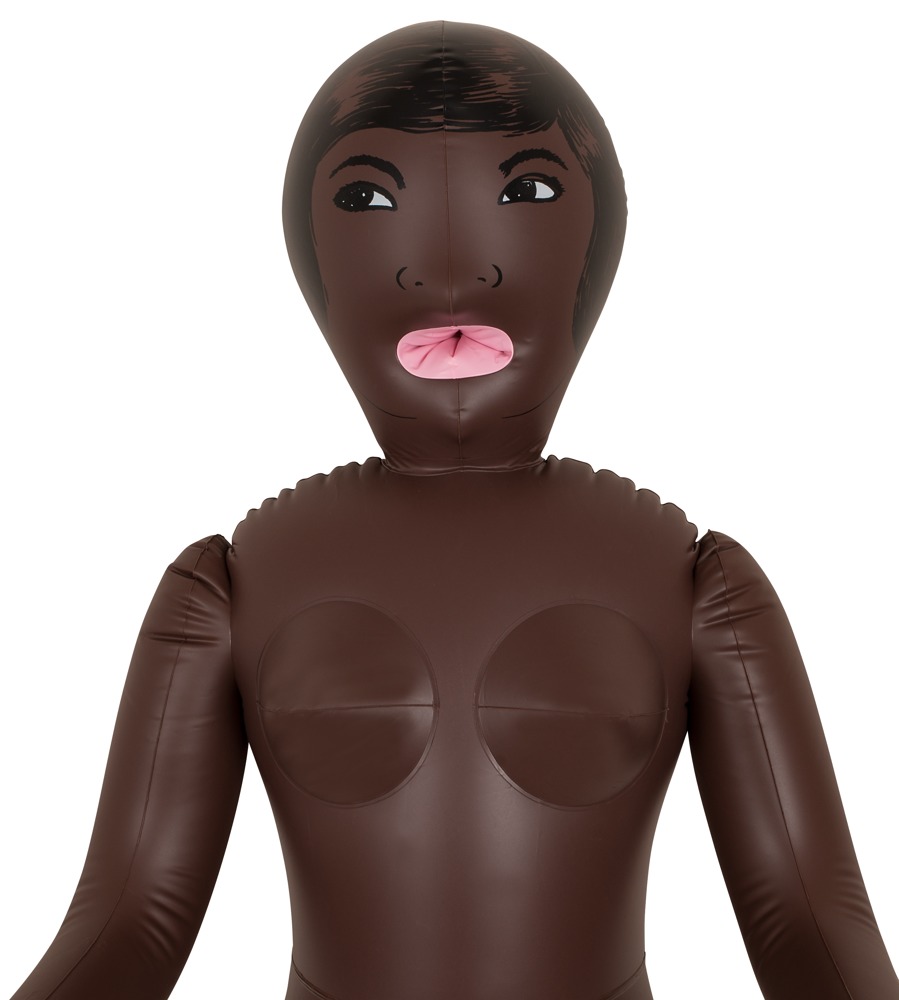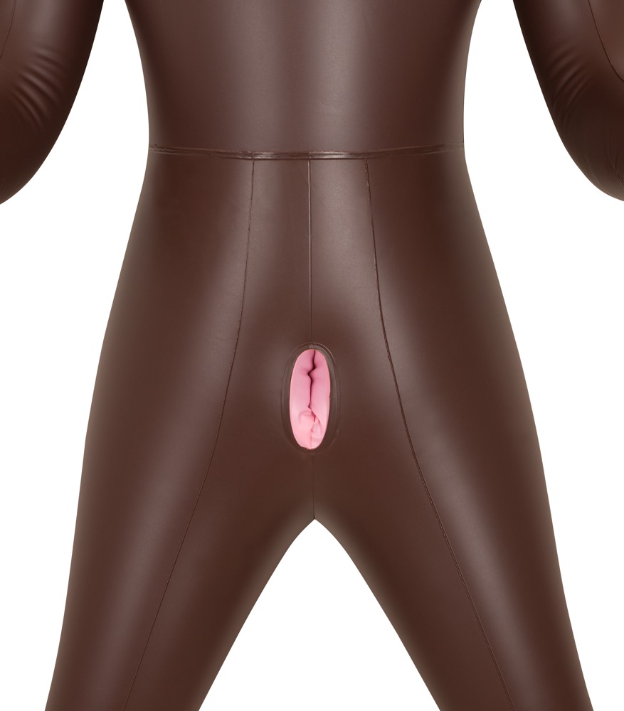 Huidkleurige donkere party/love pop Beauty Queen van You2Toys met 3 genotsopeningen: Mond, vagina en anus. Haar en gezicht zijn bedrukt.