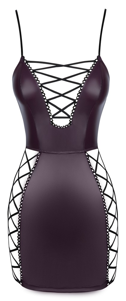 Aansluitende strappy mini jurk van Cottelli PARTY in een trendy matte look en donkerpaars. Met decoratieve vetersluiting van zwarte stretchbandjes in het decolleté en aan de zijkanten van de rok. Overal zacht en stretchy voor volledig comfort. De bandjes zijn verstelbaar.