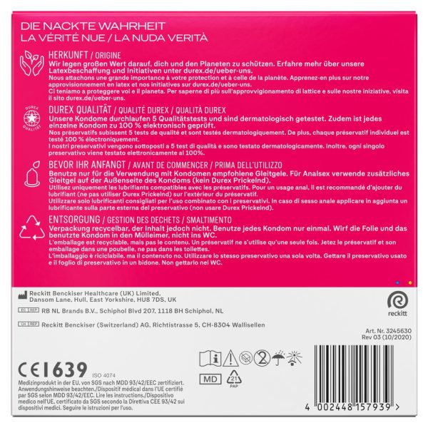Deze transparante Pleasure Me condooms van Durex zorgen voor intense stimulatie tijdens het vrijen. Met een extra hydraterende coating op siliconenbasis. Anatomische easy-on vorm in een normale pasvorm met reservoir.