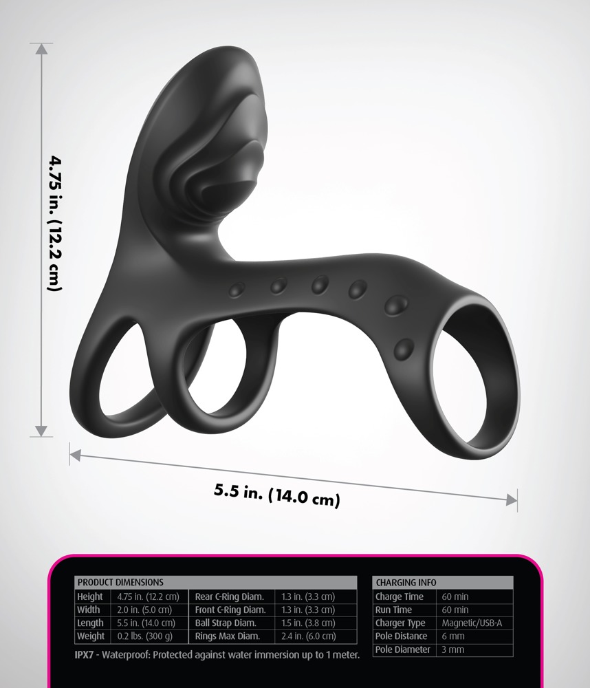 Dankzij de zachte, elastische siliconen zijn de manchet en ringen eenvoudig aan te brengen en passen ze perfect. De hoge flexibiliteit zorgt ervoor dat de krachtige dubbele vibraties bij elke beweging intensief worden ervaren. Maximaal comfort en plezier!