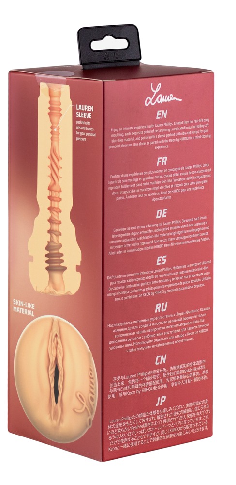 Voel Lauren Phillips masturbator van Kiiroo met originele voorgevormde vagina opening van erotische ster Lauren Phillips en gesigneerd met haar handtekening naast de vulva lippen. De zeer divers gestructureerde binnenkant komt heel dicht bij Lauren's strakke vagina en zorgt voor een intense massage tijdens een handjob. De binnenste sleeve van huidachtig Superskin materiaal kan gemakkelijk uit de antislip, discrete behuizing worden gehaald om schoon te maken.