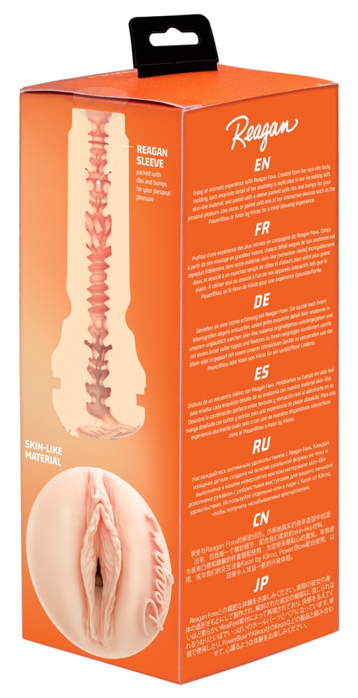 Voel Reagan Foxx masturbator van Kiiroo met origineel gegoten vulva van erotische ster Reagan Foxx. De zeer divers gestructureerde binnenkant komt ook heel dicht bij Reagan's vagina en zorgt voor een intense massage tijdens een handjob. De binnenhoes van huidachtig zacht materiaal is zelfs gesigneerd met Reagan's handtekening naast de vulva-lippen. De sleeve kan gemakkelijk uit de antislip, discrete behuizing worden gehaald om schoon te maken.