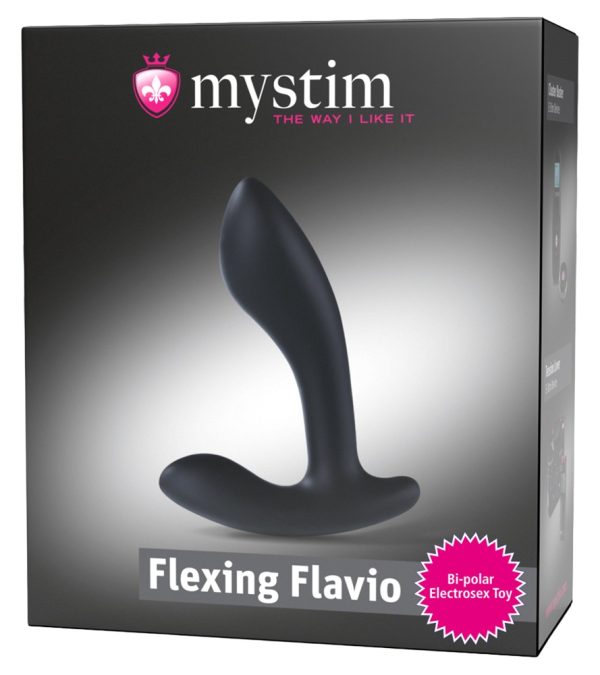 Innovatieve, bipolaire e-stim prostaatstimulator Flexing Flavio voor stimulatie huidig apparaat Tension Lover of Pure Vibes van Mystim. Intensief gevormd en met een imposante maar gevoelige P-spot tip. Extreem flexibel dankzij Flex & Stay technologie, zodat het in de gewenste vorm gebogen kan worden en in deze vorm blijft. Gemaakt van medisch platina silicone met een bijzonder glad en zacht oppervlak voor gemakkelijk inbrengen en maximaal comfort tijdens anale e-stim verwenning.
