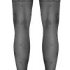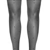 Black hold-up stockings from Cottelli LEGWARE in a delicate mesh design with polka dots and woven-in suspenders. Beautiful 8 cm wide lace trim with silicone reinforcement on the inside for a perfect, non-slip fit. Slightly preformed feet. Yarn weight 40 den. Oeko-Tex certified.