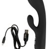 Gewoonweg prachtige, handige Intense Rabbit Vibrator van You2Toys met indringende, ultradiepe vibraties. En twee keer zo intens: de 2-armige vibrator verwent tegelijkertijd van binnen en van buiten! De ideaal gebogen, vullende gegroefde schacht masseert met zijn vergrote vibrerende kop de G-zone in de vagina. Tegelijkertijd stimuleert de kleinere, zacht vibrerende arm de clitoris.