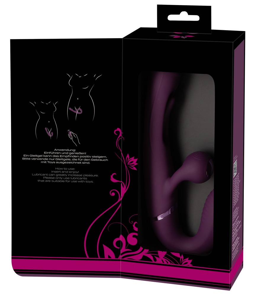 Vier krachtige maar stille motoren zorgen voor betrouwbare kracht. De functies kunnen gemakkelijk worden bediend met de afstandsbediening (bereik 8 m) of direct op het speeltje. Elk uiteinde van de dubbele vibrator kan apart worden bediend. De korte vibrator biedt veel variatie met 10 vibratiestanden. De vibraties van de lange vibrator en de buitenste bullet stimulator worden met elkaar gecombineerd en intensief ondersteund door de razendsnelle slingerende tong (flicking tongue) in de schacht. Ook deze stimulatiecombinatie kan met één druk op de knop in 10 standen worden geregeld.