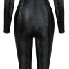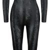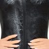 Aansluitende jumpsuit met lange mouwen van Cottelli PARTY in een grijze slangenleerlook - zit als een tweede huid. Zacht en stretchy voor maximaal comfort. De 3-weg ritssluiting, die loopt van de kleine opstaande kraag door het kruis tot over de billen, is zowel praktisch als erotisch - hij kan op verschillende manieren worden geopend en gesloten.