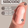 Oplaadbare Natural Vibrator 6 "Vibrating + Dual Density Silicone Cock van King Cock Elite in hyperrealistische penis look gemaakt van dubbele dichtheid siliconen materiaal dat aanvoelt als echte huid. De vibrator zelf heeft (net als een echt stijf lid) een stevige, maar flexibele schacht die de plezierervaring zo realistisch mogelijk maakt.