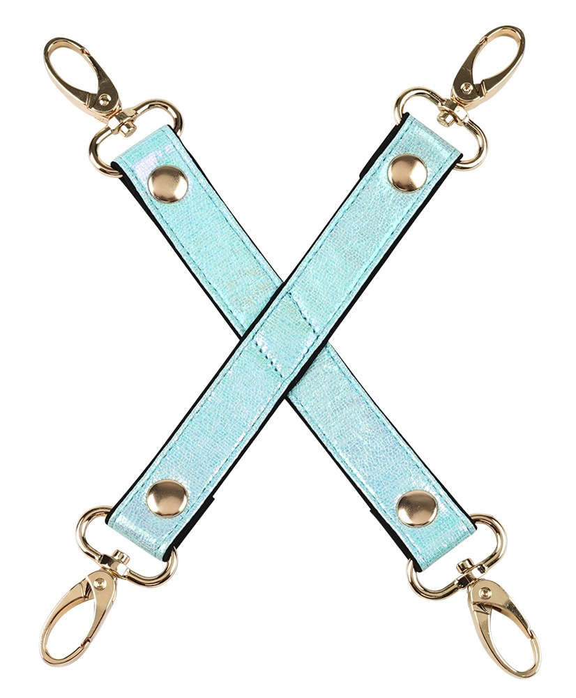 8-delige bondageset Vivid Sorairo van Liebe Seele in een elegante blauwe parelmoer-look (Glossy Sky) met goudkleurige fittingen en accessoires. Een heel speciale set voor nieuwsgierigen en kenners - exclusief en van de hoogste kwaliteit! Deze set bevat: