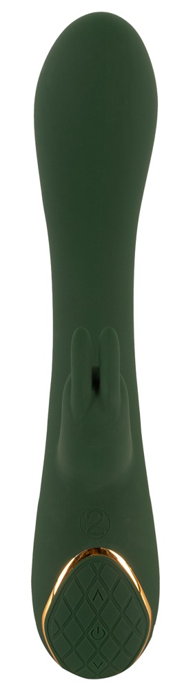 Luxe rabbit vibrator van Emerald Love by You2Toys voor perfecte dubbele stimulatie van de vagina en clitoris. Vullend en sensueel gebogen om de vaginale G-zone perfect te bereiken. Prachtig flexibel om zich perfect aan te passen aan gesynchroniseerde stimulatie en intieme contouren. Gemaakt van zijdezachte siliconen voor gemakkelijk inbrengen en maximaal verwencomfort. De luxe rabbit vibrator in een elegant smaragdgroen design met goudkleurige details maakt ook indruk met zijn antislip diamantstructuur en eenvoudige bediening.