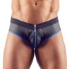 Mat glanzende en bodemloze jock in neopreen rubberlook die gegarandeerd voor spannende paalloze momenten zorgt. Met een rits aan de voorkant die je uitnodigt om hem te pakken.