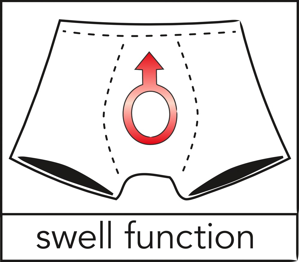 Semi-transparante broek met zwelfunctie voor een indrukwekkende bolling aan de voorkant. Bovendien is de broek aangenaam elastisch en sluit hij goed aan.