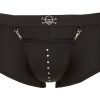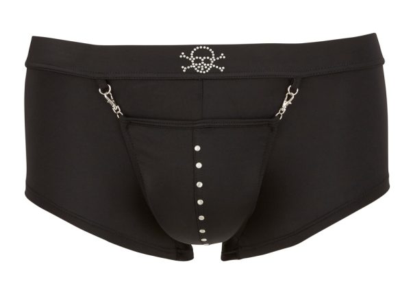 Een nauwsluitende piratenbroek met buidelzak en karabijnhaak. Met zwelfunctie voor een indrukwekkende bolling vooraan en authentieke geklonken schedel op de tailleband. Perfect voor wilde avonturen en heet rollenspel.