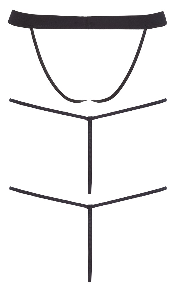 Deze drie snaren zijn altijd goed om te gebruiken: Ministring, Schmalissimo en Jockstring. Alle drie in zwarte elastische wetlook met sterke glans.