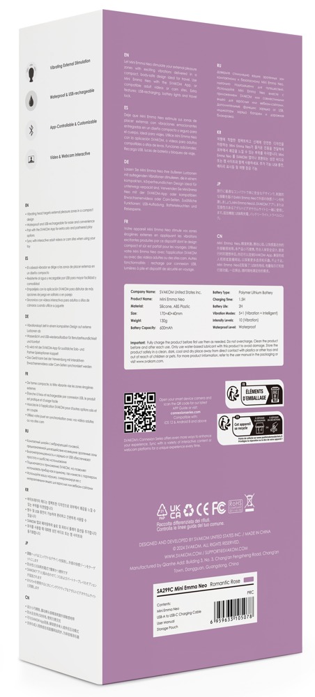 6 fluisterstille vibratiestanden, elk met 5 intensiteiten, zorgen voor voldoende afwisseling voor intense massagemomenten. Er is ook de extra SVAKOM Intelligent modus, die een echt seksritme nabootst. Alles kan gemakkelijk direct op het speeltje worden bediend met één druk op de knop. Inclusief de praktische knopvergrendeling voor discreet transport en opbergen.