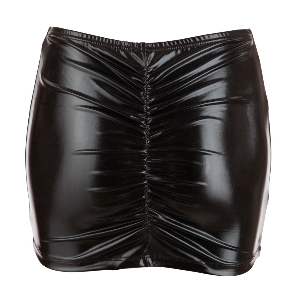 Deze minirok van Cottelli Party in een trendy zwarte wetlook laat je billen perfect uitkomen dankzij de rimpeling aan de achterkant. Een sexy basisrokje voor vele looks.