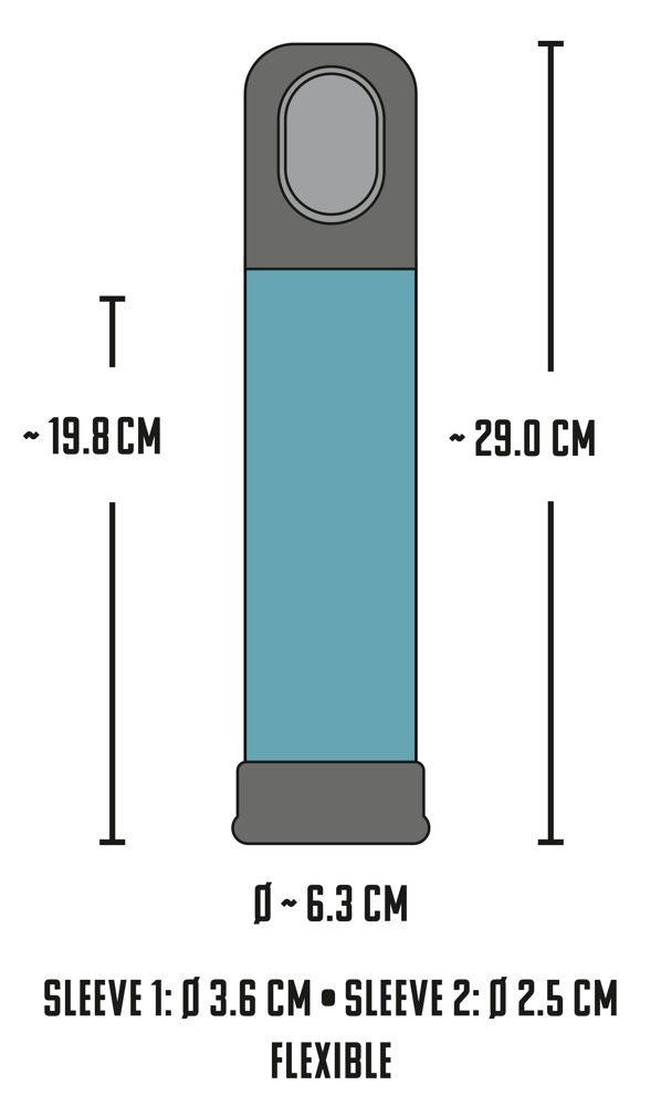 De transparante cilinder met maatverdeling (cm en inches) genereert snel en handig het zuigvacuüm. De penis kan opzwellen tot zijn maximale grootte en vorm. De zuigstanden en het oplaadniveau van de batterij kunnen worden gecontroleerd op het LED-display. Meegeleverd worden 2 zijdezachte siliconen hulzen met verschillende diameters voor een perfecte afsluiting tussen de cilinder en het lichaam.