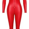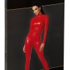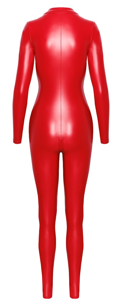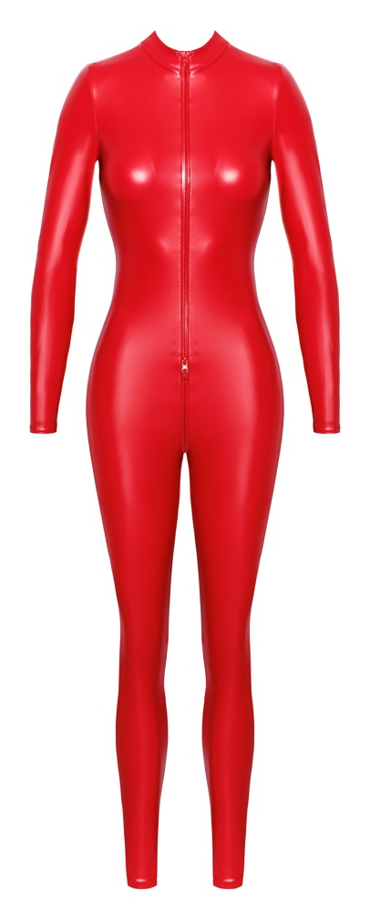 Huiddichte jumpsuit Orgia van Noir met lange mouwen in een rode powerwet-look met een geraffineerde matte afwerking. Zit als een tweede huid. Zacht en stretchy voor maximaal comfort. De 3-weg ritssluiting is zowel praktisch als sexy. Van de kleine opstaande kraag via het kruis tot over de bips kan hij op verschillende manieren worden geopend en gesloten.