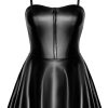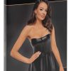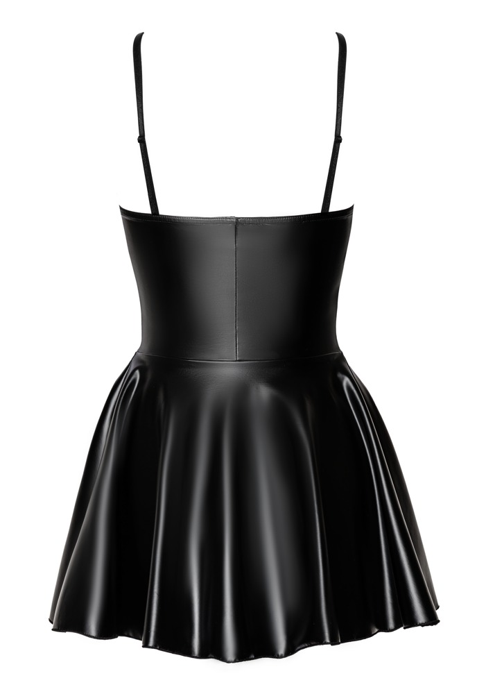 Zwart mini-jurkje Libido van Noir volledig in een matglanzende powerwet-look. Overal zacht en elastisch voor maximaal comfort. Huiddichte korset top met een zwierige, uitlopende rok. Inclusief off-the-shoulder, verstelbare bandjes voor een veelzijdige styling. Een rits aan de voorkant tot aan de tailleband.