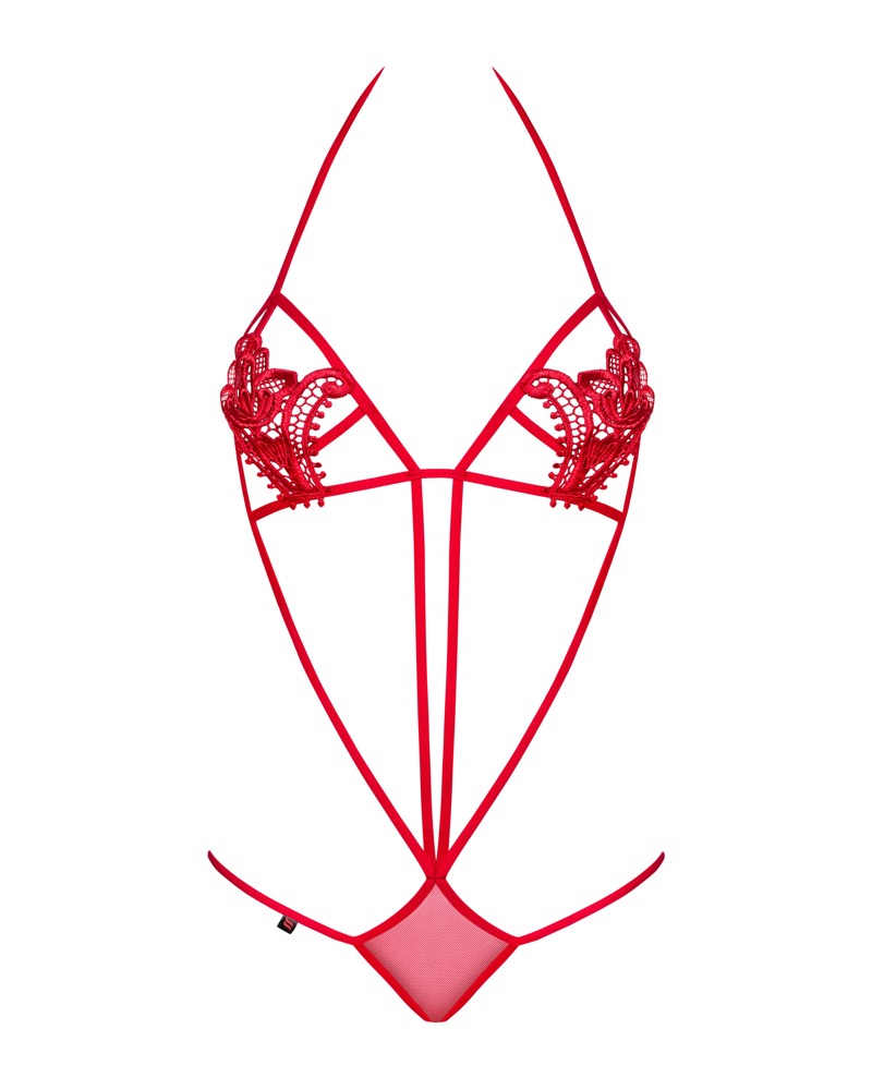 De Luiza string body van Obsessive verleidt met zijn openhartigheid die niet veel ruimte overlaat voor verbeelding. Er is delicaat bloemenborduursel boven de tepels - een blikvanger voor borstliefhebbers. Hij kan in de nek en op de rug worden gestrikt voor gemakkelijk aankleden.