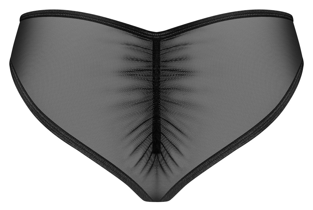 The Donarella briefs from Obsessive are in a seductive design and made out of transparent black material. There is an elaborate embroidered insert and small decorative element at the front. There are ruffles at the back. It is soft and stretchy for an extremely comfortable fit.