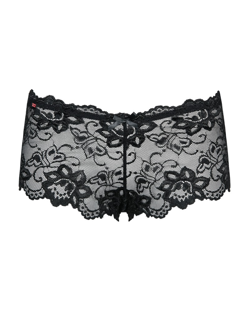 Unbelievably tempting, lace shorties! subtle shorties fully made out of elastic lace floral motif adds plenty of charm! frivolous bow at the front encourages to play elastic fabric perfectly fits to the body (90% polyamide, 10% spandex)