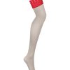 The delicate Ingridia stockings from Obsessive shine with their fine lace trim in a signal colour. The leg is delicately see-through for maximum effect.
