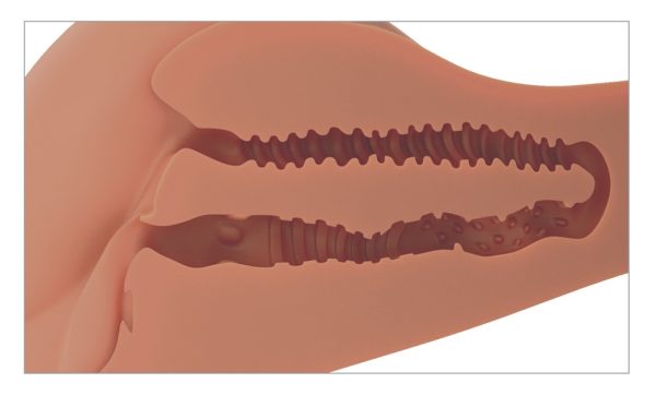 Gemaakt van huidachtig Fanta Vlees, voelt alles absoluut levensecht aan. Bovendien absorbeert het zachte, soepele materiaal snel de lichaamstemperatuur. Met zijn gewicht van bijna 5 kg ligt de handige, slipvaste torso ook stevig en slipvast op elk glad oppervlak, zodat er zorgeloos en zelfs handsfree mee gespeeld kan worden. De plezierkanalen zijn met elkaar verbonden om de reiniging te vereenvoudigen.