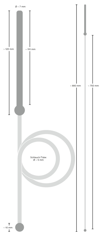 Slang 75 cm lang, mondstuk 1 cm lang.