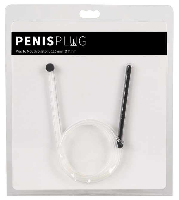 Holle Piss To Mouth Dilator van Penisplug met stevig bevestigde buis en mondstuk. Alles is naadloos vervaardigd en aangenaam flexibel en elastisch voor zorgeloos spelen en dragen. Met 75 cm is de transparante buis (ook) lang genoeg om zelf te proeven.