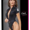Black suspender body by Cottelli COSTUMES in the Special Police style with eye-catching emblem on the left arm. Soft, cuddly stretch material mixed with matte shiny wetlook. High-necked strict look and with half-sleeves. Shoulder and chest flaps for the typical police look. Also with loops for the enclosed stretch belt with a beautiful silver-coloured buckle. The full-length 3-way zip runs from the high stand-up collar down to the crotch. The suspenders are adjustable and also completely removable from the body.