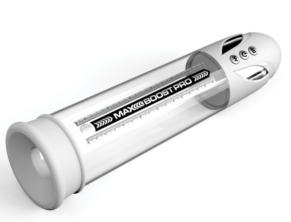 Transparante Max Boost Pro Flow penispomp van Pump Worx voor alle mannen die een effectieve training voor hun penis en potentie willen. Met krachtige zuigkracht met één druk op de knop - stimulerend als de beste pijpbeurt, leun achterover en geniet! Ontspannen plezier om de kracht en hardheid van de erectie te verbeteren voor langdurige prestaties.