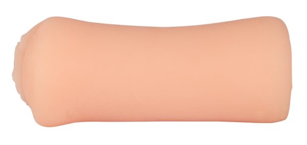 Handig klein in vagina vorm met geprononceerde schaamlippen en clitoris. Geknobd en geribbeld aan de binnenkant, open aan beide kanten. Extreem rekbaar, past zich aan de penis aan. 11 cm lang. Glad aan de buitenkant. Materiaal: TPR.