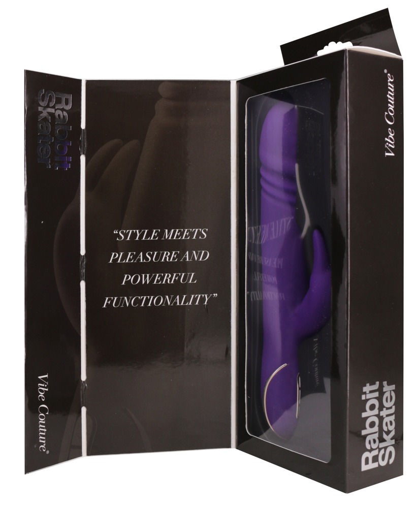 Konijnenvibrator met duw- en vibratiefunctie. De kleine, konijnvormige clitorisstimulator met beweegbare oren en neus verbergt een motor voor krachtige vibraties in 7 standen. De tip met de onderliggende stimulatiegroeven heeft een geïntegreerde schokfunctie die in drie snelheden of intensiteiten kan worden ingesteld. En dat zelfs in bad of onder de douche, want de Rabbit Skater is waterdicht! Een minnaar met verslavingsfactor! USB oplaadkabel inbegrepen.