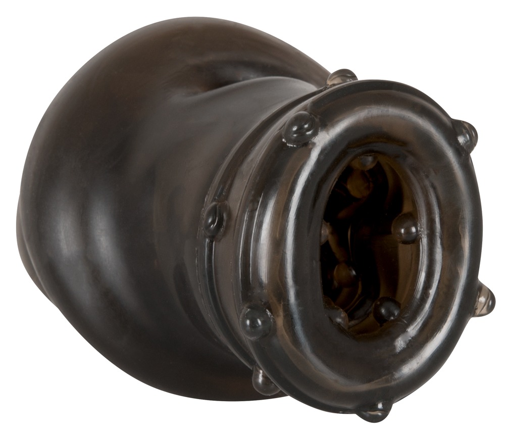 Deze smoke-kleurige penis sleeve Dick & Ball Sleeve van Rebel scoort met een extra opening voor de testikels. De huls is aan de voorkant gesloten en aan de buitenkant gegroefd, terwijl de binnenkant van het genotskanaal verrukt is met verrukkelijke nopjes en groeven. Puur plezier!