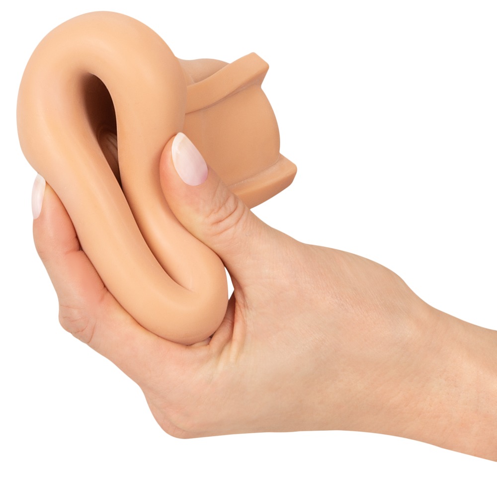 Het topje van de penis wordt zachtjes ingebed in de zachte binnensleeve. De sleeve vernauwt zich automatisch in constante verandering, zodat de binnendiameter ritmisch verandert. Deze intense knijpmassage wordt perfect ondersteund door krachtige vibraties.